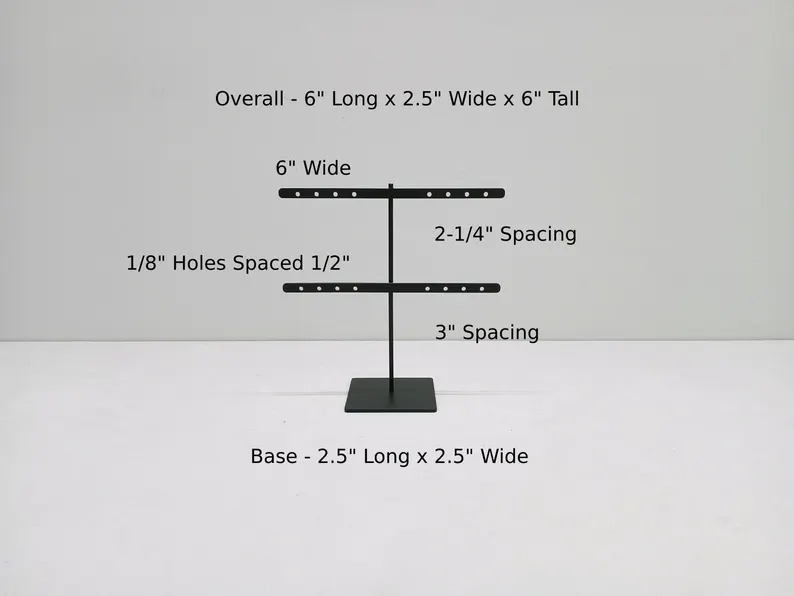 • سوراخ‌های دقیق و متعدد: میله‌های افقی با سوراخ‌های ظریف و یکسان (مشابه تصویر فنی) فاصله‌گذاری شده‌اند تا بدون ایجاد شلوغی، هر جفت گوشواره را به صورت مجزا در معرض دید قرار دهند.