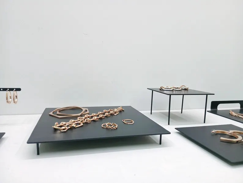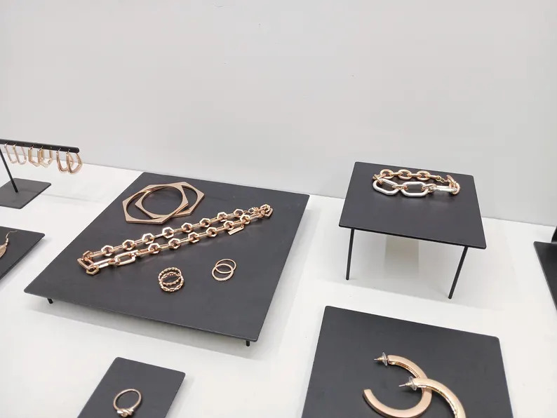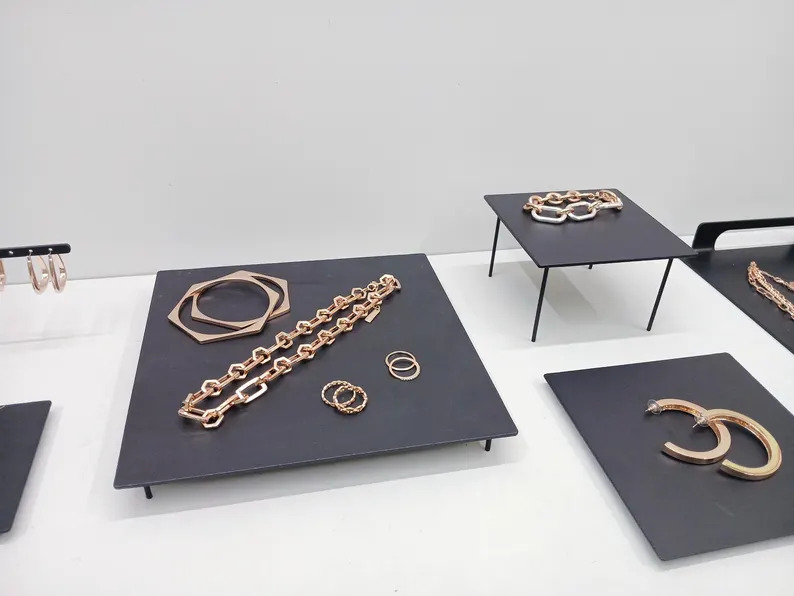 با استفاده از این استندها، جواهرات به صورت منظم و تفکیک شده نمایش داده میشوند که این امر به مشتری کمک میکند تا به راحتی محصول مورد نظر خود را پیدا کند.