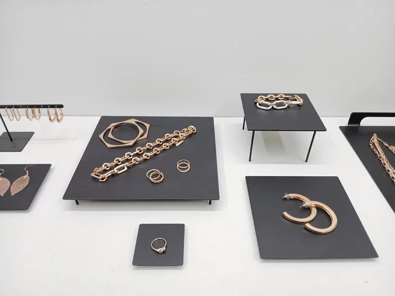 از این استندها میتوان برای نمایش ستهای جواهرات، قطعات تکی مانند دستبند و گوشواره، یا حتی کالکشنهای کوچک استفاده کرد.