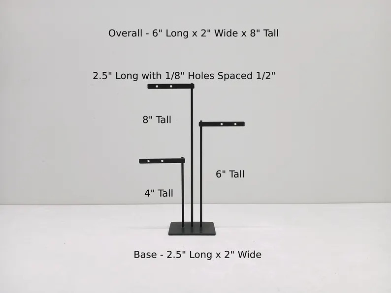 • پایه‌های با ارتفاع‌های متنوع: سه میله با ارتفاع‌های ۴، ۶ و ۸ اینچ برای نمایش چندین جفت گوشواره با اندازه‌های مختلف.